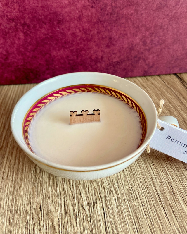 Bougie vintage parfum Pomme d'Amour, sans phtalates et sans CMR (Cancérogène, Mutagène, Reprotoxique).
